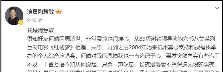 著名演员何晴因病去世,很多人才知道她生重病的消息。讣告公布后,六小龄童、马德华等圈内人纷纷悼念。但当年离婚的前夫许亚军没发任何消息,连告别仪式都没去,网上议论声不断。