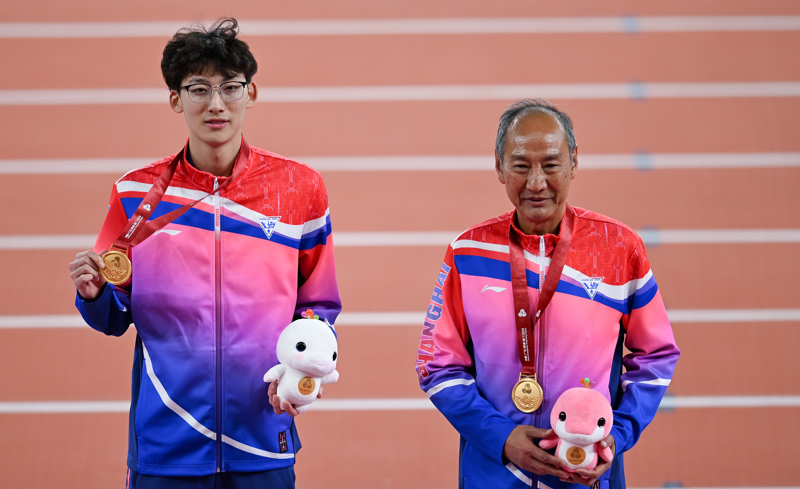 随后的颁奖仪式,徐卓一与恩师孙海平携手站上领奖台。对于弟子的突破,孙海平表示是水到渠成,按照自己规划的训练战略,徐卓一和秦伟搏身材高大,但肌肉力量略差,需要通过身体能力的补强和专项能力的提升,将水平从13.20秒的区间跃进至13.10秒区间。今年8月的衢州全锦赛,徐卓一跑得不够理想,但全运会是这一年的重中之重,接下来的三个月里,在孙海平的指导下,徐卓一在训练中重点抓两头,“一头是补强起跑的弱项,另一头强化后程的强项,取得了不错的成效。”