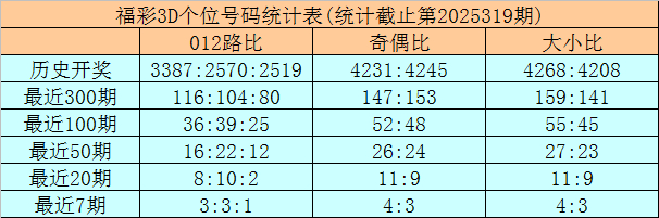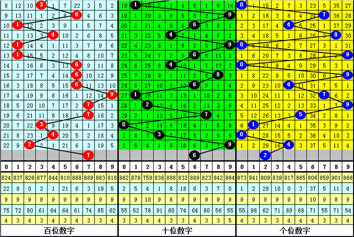 前7期012路比为3:3:1,2路号码相对走冷,目前012路号码遗漏值分别为:2期、1期和0期,本期该位注意1路号码。